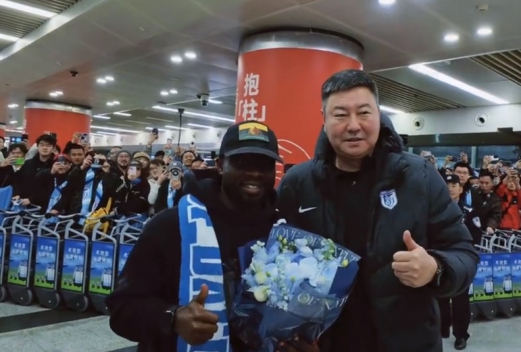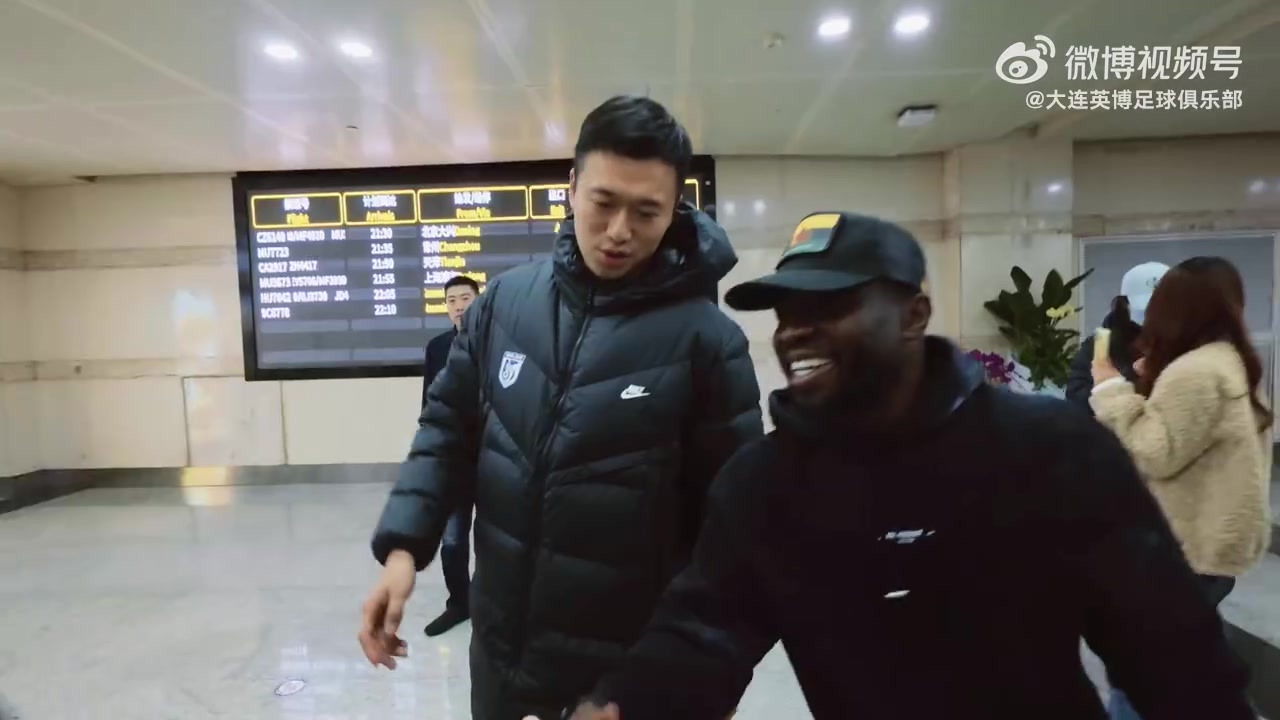 大连英博俱乐部官方写道:大年初二,人潮涌动!阿奇姆彭抵达大连。