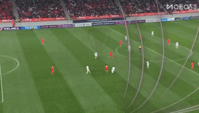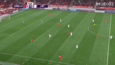 第44分钟,魏震后场右侧传球被断,蔚山禁区左侧获得绝佳机会,杨希关键铲球破坏出底线。↓