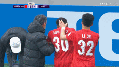 第32分钟,加布里埃尔被崔锡铉撞倒。↓